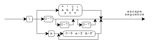 The escape sequence yields a code value that is the numeric value of the 1-, 2-, or 3-digit octal number following the backslash (\). Each d can be any digit in the range 0-7.